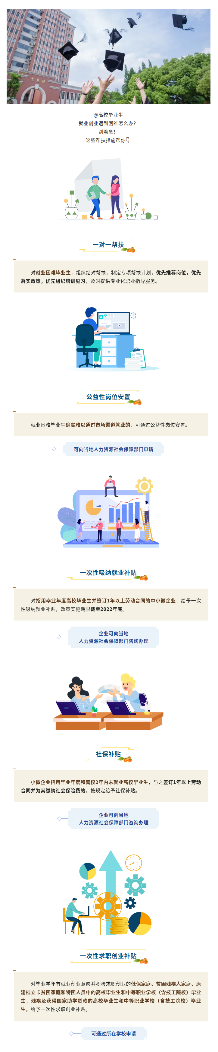 高校畢業(yè)生(sheng)就業(yè)創(chuàng)業(yè)錦(jin)囊|有困難別著急!一對(duì)一幫扶、公益性崗位安置,還有(you)補(bǔ)貼可領(lǐng)
