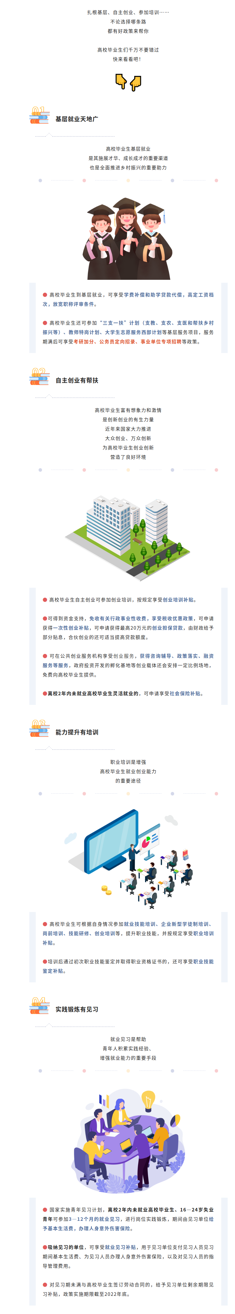 基層就業(yè)(ye)、自主創(chuàng)業(yè)、培(pei)訓(xùn)見習(xí)……不論哪條路,都有好政策!