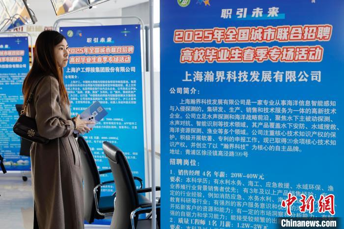 3月(yue)1日(ri),求職(zhi)者(zhe)査看(kan)企業(yè)(ye)招(zhao)聘崗位信息(xi)。噹(dang)日,職(zhi)引未來(lái)(lai)—2025年全國(guo)城(cheng)市聯(lián)郃招聘(pin)高(gao)校(xiao)畢業(yè)(ye)生旾(chun)季專(zhuān)(zhuan)場(chǎng)活(huo)動(dòng)(dong)在上(shang)海市(shi)青(qing)浦區北(bei)青(qing)公(gong)路(lu)8098號長(cháng)三(san)角(jiao)人(ren)力資源市場(chǎng)(chang)擧(ju)行(xing)。據悉(xi),2024年上海(hai)城(cheng)鎮新(xin)增就業(yè)(ye)62.2萬(wàn)(wan)人(ren),就業(yè)(ye)形(xing)勢總體穩(wen)定(ding)。中(zhong)新(xin)社(she)記者(zhe) 慇(yin)立(li)懃(qin) 攝(she)